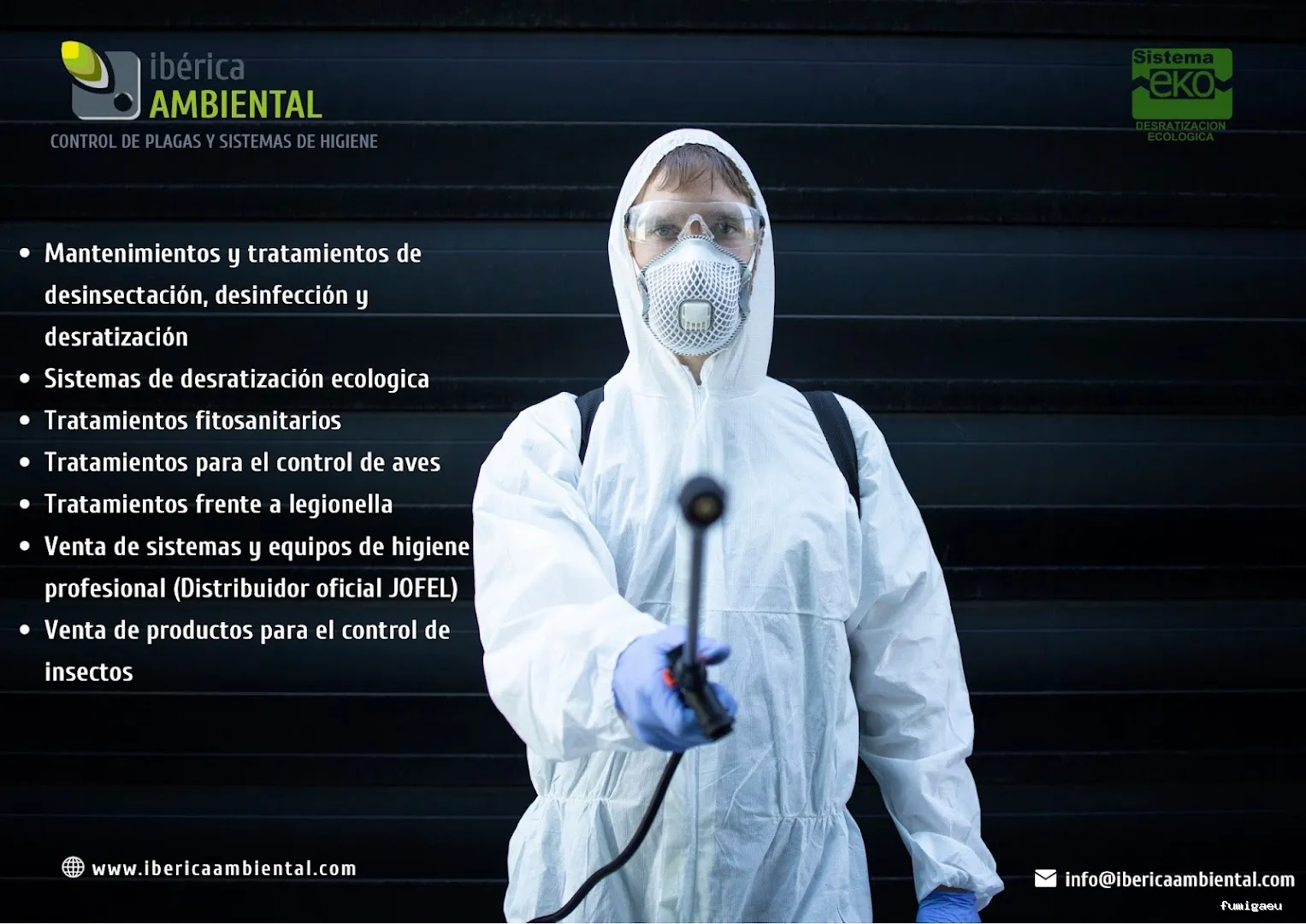 En Ibérica Ambiental protegemos la salud pública y la higiene de plagas y enfermedades mediante espacios sanos y libres de plagas que permiten el desarrollo próspero de personas, empresas y comunidades. Nuestro personal está altamente cualificado en los servicios que ofrecemos, garantizando el trabajo de una forma responsable y sostenible con el medio ambiente. Realizamos tratamientos de desinsectación, desratización y desinfección. Distribuidores oficiales de la marca Jofel, fabricante líder en aparatos de higiene y limpieza profesional.